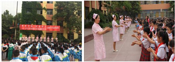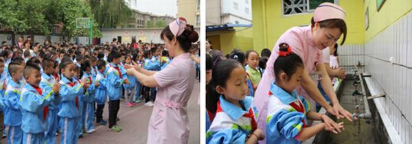 護士節(jié)前夕的一個早上,延安大學咸陽醫(yī)院的十多名護士在陳英總護士長帶領下,踏著清晨柔和的陽光,沿著校園小路,來到文林路小學。組織了“健康中國,科普助力—護士與您攜手共創(chuàng)健康生活”的進校園,教洗手,健康生活活動。