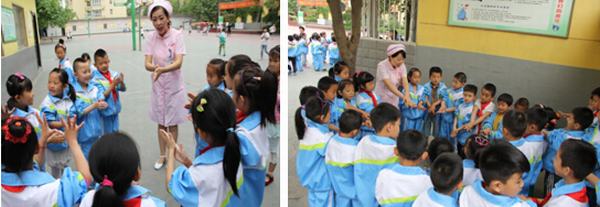 面對孩子們渴求知識的端正態(tài)度、純真的笑臉,令我們不禁想起我們護士在面對生命時的虔誠、慎重,由衷體會到健康至關重要。正確的健康引導、堅實的健康守衛(wèi)是我們醫(yī)務人員使命,關注健康,心系孩童。