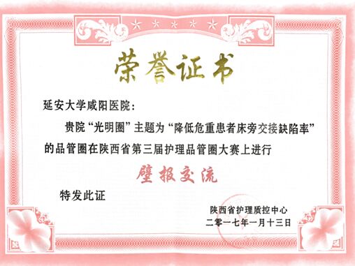 新年伊始,臘梅初開(kāi)。1月13日由陜西省質(zhì)控中心舉辦的 “2016年陜西省護(hù)理質(zhì)控管理培訓(xùn)班暨第三屆品管圈展示會(huì)”在小寨軍區(qū)招待所會(huì)議廳舉行。本次參加展示交流的40個(gè)品管圈,是從陜西省各地市164個(gè)品管圈中脫穎而出的,其中20個(gè)圈在本次大會(huì)進(jìn)行展示并進(jìn)行評(píng)選,20個(gè)圈以壁報(bào)形式展示,我院NICU“光明圈”主題:降低患者床頭交接缺陷率參加本次壁報(bào)展出。是咸陽(yáng)市進(jìn)入成果展示的兩家醫(yī)院之一。