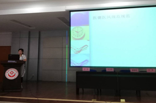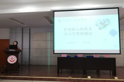黨文婷總護(hù)士長就《實習(xí)生管理規(guī)定及相關(guān)護(hù)理核心制度》分別從法律法規(guī)、我院護(hù)理核心制度、實習(xí)生要求及規(guī)范、請假管理規(guī)定等方面進(jìn)行講解,要求同學(xué)們嚴(yán)格執(zhí)行護(hù)理核心制度,認(rèn)真遵守醫(yī)院相關(guān)規(guī)定;護(hù)理部奉明老師從《護(hù)士執(zhí)業(yè)禮儀與醫(yī)德醫(yī)風(fēng)規(guī)范》中教會大家如何成為一名講文明、懂禮貌、有內(nèi)涵、高素質(zhì)的優(yōu)秀護(hù)士;羅建利護(hù)士長針對《護(hù)患溝通技巧》闡述了護(hù)患溝通的方法、技巧、時機,指導(dǎo)大家在今后的臨床工作中如何實施有效的護(hù)患溝通;董朝妮護(hù)士長對于《如何更好的進(jìn)行臨床護(hù)理實習(xí)》結(jié)合自身工作學(xué)習(xí)經(jīng)驗,教會大家在有限的時間內(nèi)學(xué)到更多的知識,為今后走上護(hù)理崗位奠定基礎(chǔ);劉敏護(hù)士長從《護(hù)理工作安全隱患》中圍繞患者十大安全目標(biāo),重點對護(hù)理實習(xí)生在實習(xí)過程中易出現(xiàn)的問題、防范措施等方面進(jìn)行講解。