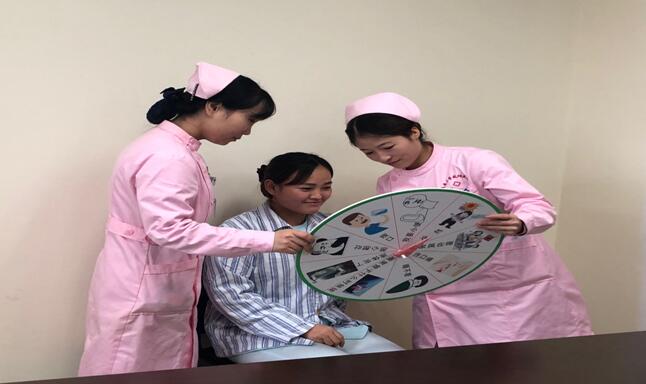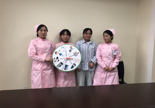 CCU病區(qū)展示的是外科全麻手術(shù)后插管約束患者的有效溝通。針對患者術(shù)后帶有多根引流管及氣管插管,溝通不暢的情況下發(fā)明了“溝通大圓盤”,有效解決了患者在無法用語言、沒有書寫能力的情況下,圓滿的解決了護(hù)患難題。