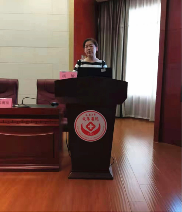 培訓(xùn)伊始,楊敏主任代表醫(yī)院向來我院學(xué)習(xí)的實(shí)習(xí)生表示熱烈歡迎。她強(qiáng)調(diào)崗前培訓(xùn)是銜接學(xué)校與醫(yī)院的橋梁;通過崗前培訓(xùn)學(xué)生們可以消除進(jìn)入臨床的顧慮與擔(dān)憂,增加實(shí)習(xí)的信心。接下來她就延安大學(xué)咸陽(yáng)醫(yī)院概況及“仁愛為本,慎獨(dú)為魂”的護(hù)理理念進(jìn)行了授課。