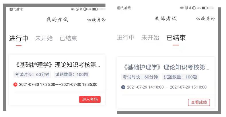 【考核進(jìn)入考場界面】 【考核結(jié)束可查閱成績】