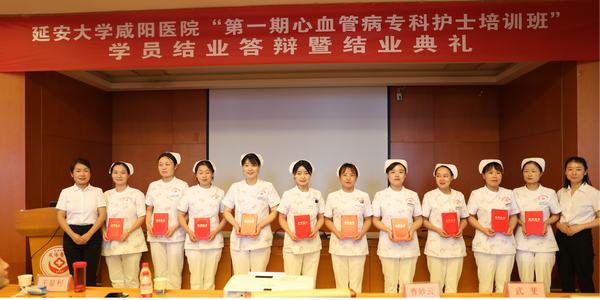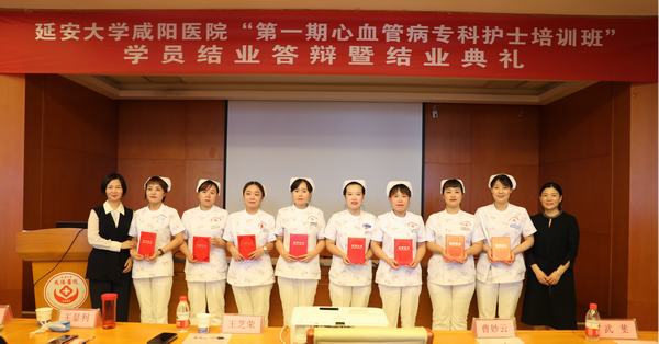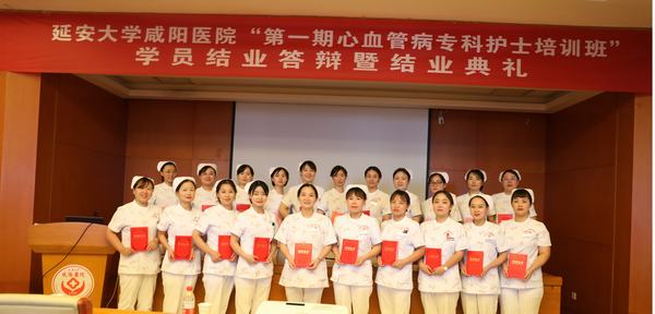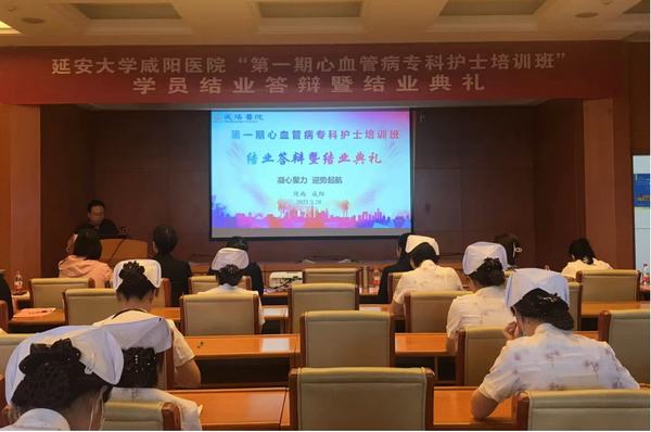 寶劍鋒從磨礪出,梅花香自苦寒來。積土而為山,積水而為海。為促進(jìn)醫(yī)院心血管??谱o(hù)理全面、協(xié)調(diào)、可持續(xù)發(fā)展,提高心血管護(hù)理專業(yè)技術(shù)水平,促進(jìn)專科護(hù)理工作發(fā)展,2021年8月4日-9月28日,延安大學(xué)咸陽醫(yī)院心血管病院在院領(lǐng)導(dǎo)的大力支持下,舉辦了“第一期心血管病??谱o(hù)士培訓(xùn)班”。經(jīng)過26課時的理論學(xué)習(xí)、12課時的操作培訓(xùn)、為期兩周(20課時)的CCU輪轉(zhuǎn)、理論考核、多站點式操作考核、護(hù)理病例匯報,近2個月的學(xué)習(xí),24名學(xué)員完成了所有的學(xué)習(xí)任務(wù),以優(yōu)異的成績?yōu)樽约航涣艘环轁M意的答卷。2021年9月28日心血管??谱o(hù)士培訓(xùn)班在心臟樓第一學(xué)術(shù)廳隆重舉辦了結(jié)業(yè)答辯暨結(jié)業(yè)典禮。本次結(jié)業(yè)典禮由姚沖護(hù)士長主持,蒞臨現(xiàn)場的領(lǐng)導(dǎo)有:吳棟梁院長、左梅主任、李陽主任、王顯利主任,王芝榮主任,黨文婷總護(hù)士長、心血管病院各科護(hù)士長。