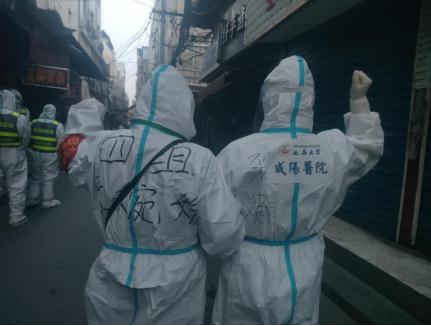 日子久了,我們跟王阿姨慢慢熟稔起來,工作配合也越來越默契,無論是分發(fā)物資還是入戶采樣,都會高效完成。她也從來不吝嗇向我們表達喜愛之情?!澳輧海易钕矚g你們延大咸陽醫(yī)院的孩子們啦!不但工作效率高,也從來沒聽見你們?nèi)魏稳私锌嘟欣邸?,“妮兒,阿姨沒去過咸陽,你們醫(yī)院到底在哪兒?。块L什么樣兒???”“妮兒,等疫情過去了,你一定要帶著大家再來潘家莊轉(zhuǎn)轉(zhuǎn),阿姨給你們包餃子!”她依然快人快語,但我們卻被她的真誠與善良感動著。
