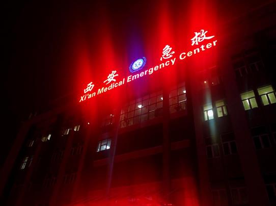 在前往西安城區(qū)的道路上,空氣中彌漫著消毒水的味道,街道上空空蕩蕩,本就寂靜黑夜,更添幾許哀傷幽靜。往日繁華熱鬧的城市喪失了生機(jī)活力時,我的內(nèi)心五味雜陳,鼻頭酸澀,默默給自己打氣“即使前進(jìn)的道路布滿荊棘,你也要砥礪前行?!钡竭_(dá)急救中心的時候已明月高懸、燈影閃爍,我絲毫不敢放松警惕,抓住每分每秒,與時間賽跑,與病毒搶奪時機(jī)——在領(lǐng)取物資、培訓(xùn)學(xué)習(xí)之后便開始了緊張且繁忙的急救工作。