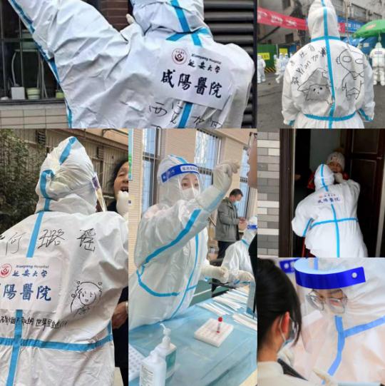 TA們,出生于千禧年之后,青春飛揚,一線工作中,她們的身影勇敢而堅強,可以俯下身單膝跪地為小朋友采集,也可不知疲倦的奔波在不同的居民樓里入戶采集,曾幾何時,TA們還是我們眼中的孩子,只是換了一身衣服,便用稚嫩的肩膀,扛起了屬于自己的使命。曾經(jīng)問過TA們,面對新冠病毒你們害怕嗎?“怕,因為害怕,所以想更快的去消滅它?!闭鎸嵍鵁o謂的回答,明亮的眸里能看見星星,幽默、自信、靈動的TA們,沒有包袱,輕裝前進。用“小小的年紀”書寫“大大的擔當”,在一線揮灑著青春的力量。