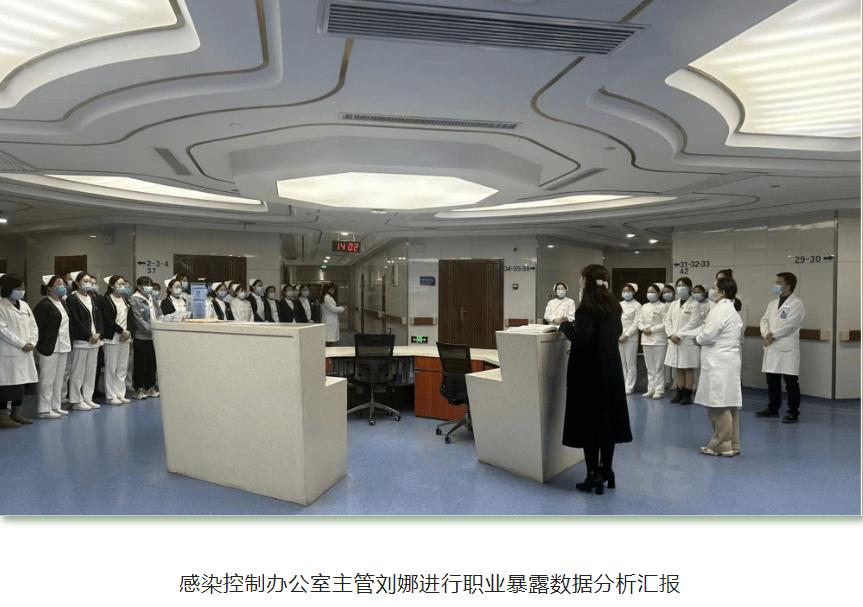 演練伊始,感染控制辦公室主管劉娜針對去年全年上報(bào)職業(yè)暴露數(shù)據(jù)進(jìn)行匯報(bào)分析,以數(shù)據(jù)為導(dǎo)向,以預(yù)防為目的,開展此次應(yīng)急演練。加強(qiáng)醫(yī)務(wù)人員了解和掌握職業(yè)安全防護(hù)措施及職業(yè)暴露應(yīng)急處理流程。