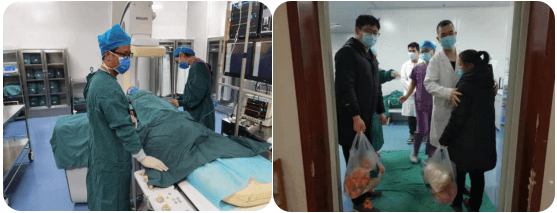 “醫(yī)生醫(yī)生,麻煩您了”“您一定要盡全力”“所有的字我都簽,錢不是問題”只見介入室門前一群家屬簇?fù)碇ぷ魅藛T,你一言我一語,“請(qǐng)您們放心,我們一定會(huì)盡最大的努力救治病人,這是我們的職責(zé),現(xiàn)在是爭(zhēng)分奪秒的時(shí)刻,治療越早效果越好,請(qǐng)您放心,安心等待,后面還需要照顧患者?!苯槿胧中g(shù)室內(nèi),只聽見患者因疼痛聲嘶力竭的叫喊聲和護(hù)士耐心細(xì)微地安慰聲:“深呼吸醫(yī)生正在給您處理,請(qǐng)您堅(jiān)持一下,疼的話握緊我的手......”經(jīng)過醫(yī)生精湛的操作技術(shù),護(hù)士全力以赴配合,最終造影顯示血管完美暢通。洗手衣早已完全浸濕,累的早已直不起了腰,看到患者完美地結(jié)局,懸著的心終于放下來了,這樣的場(chǎng)景在這里習(xí)以為常。