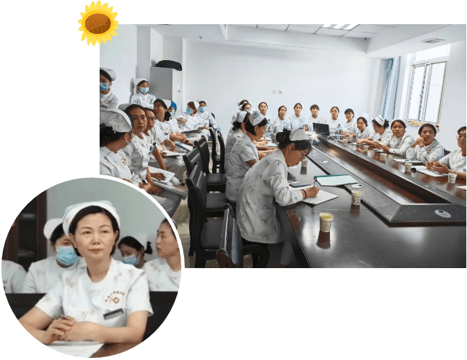 討論會從病情介紹、主要治療、常見護理問題及護理措施、護理疑難點討論四個方面展開。首先,責任護士李春肖作了病例匯報,闡明了患者合并癥多,治療復雜,涉及多??谱o理知識、護理問題繁多等情況,劉曦護士長引導科室護士根據(jù)該患者病史及癥狀體征,通過低年資護士率先發(fā)言、高年資護士補充、護士長總結完善的方式,擬定護理計劃,提出護理問題。大家展開積極的發(fā)言,先后為該患者共列舉出16個護理問題,根據(jù)標準護理計劃首優(yōu)、中優(yōu)、次優(yōu)原則,進一步找出患者首優(yōu)重要護理問題,并給與相應的護理措施。