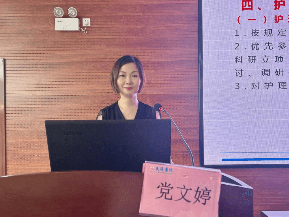 開班儀式由護(hù)理教學(xué)管理委員會委員段秋燕護(hù)士長主持,護(hù)理教學(xué)管理委員會主任委員黨文婷總護(hù)士長為開幕式致辭,她指出臨床護(hù)理教學(xué)貫穿于整個(gè)護(hù)理教育體系,是提升護(hù)士核心能力的重要手段,也是護(hù)理高質(zhì)量發(fā)展的重要途徑。希望帶教老師在今后的帶教工作中以傳道授業(yè)為己任,創(chuàng)新帶教模式,拓展帶教思維,深耕??谱o(hù)理,保證患者安全,做一位有高度、有溫度的帶教老師,培養(yǎng)一批精專業(yè)、善關(guān)懷的學(xué)生,為醫(yī)院和社會培養(yǎng)更多優(yōu)秀的護(hù)理人才。隨后,黨老師憑借多年的臨床教學(xué)經(jīng)驗(yàn),就護(hù)理教學(xué)相關(guān)管理制度及帶教質(zhì)量檢查標(biāo)準(zhǔn)進(jìn)行了詳細(xì)解讀。