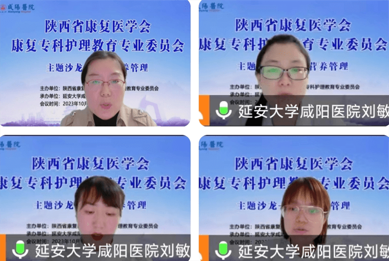 本次沙龍由延安大學咸陽醫(yī)院康復醫(yī)學科劉敏護士長主持,陜西省康復醫(yī)學會康復??谱o理教育專委會楊峰主任委員致辭,來自省內(nèi)各家醫(yī)院的50余名康復護理學科帶頭人,線上齊聚一堂,通過醫(yī)、護、技的深入講解與探討,使與會的各位老師對卒中患者的營養(yǎng)管理有了新的認識,進一步提高了卒中患者營養(yǎng)管理水平。
