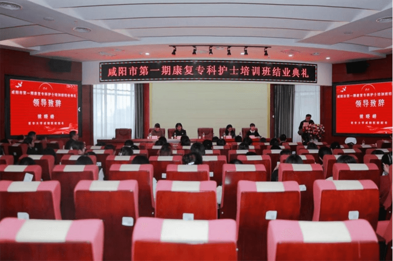 揚(yáng)帆起遠(yuǎn)航,不負(fù)青春夢(mèng)。2023年11月3日下午,由咸陽市衛(wèi)健委主辦、延安大學(xué)咸陽醫(yī)院承辦的咸陽市第一期康復(fù)??谱o(hù)士培訓(xùn)班結(jié)業(yè)典禮在延安大學(xué)咸陽醫(yī)院第三學(xué)術(shù)廳隆重舉辦。本次結(jié)業(yè)典禮由腦血管病院總護(hù)士長宋春蘭主持,延安大學(xué)咸陽醫(yī)院院長姚曉峰、院長助理兼護(hù)理部主任楊敏、科研教學(xué)管理中心副主任陳青、康復(fù)治療區(qū)主任梁莉娜、康復(fù)??谱o(hù)士培訓(xùn)基地負(fù)責(zé)人劉敏受邀出席,參加結(jié)業(yè)典禮的還有培訓(xùn)班班主任、授課專家、分院總護(hù)士長、臨床實(shí)踐科室護(hù)士長、我院康復(fù)專科護(hù)士、康復(fù)護(hù)理聯(lián)絡(luò)員及來自市縣區(qū)的學(xué)員共計(jì)120人。