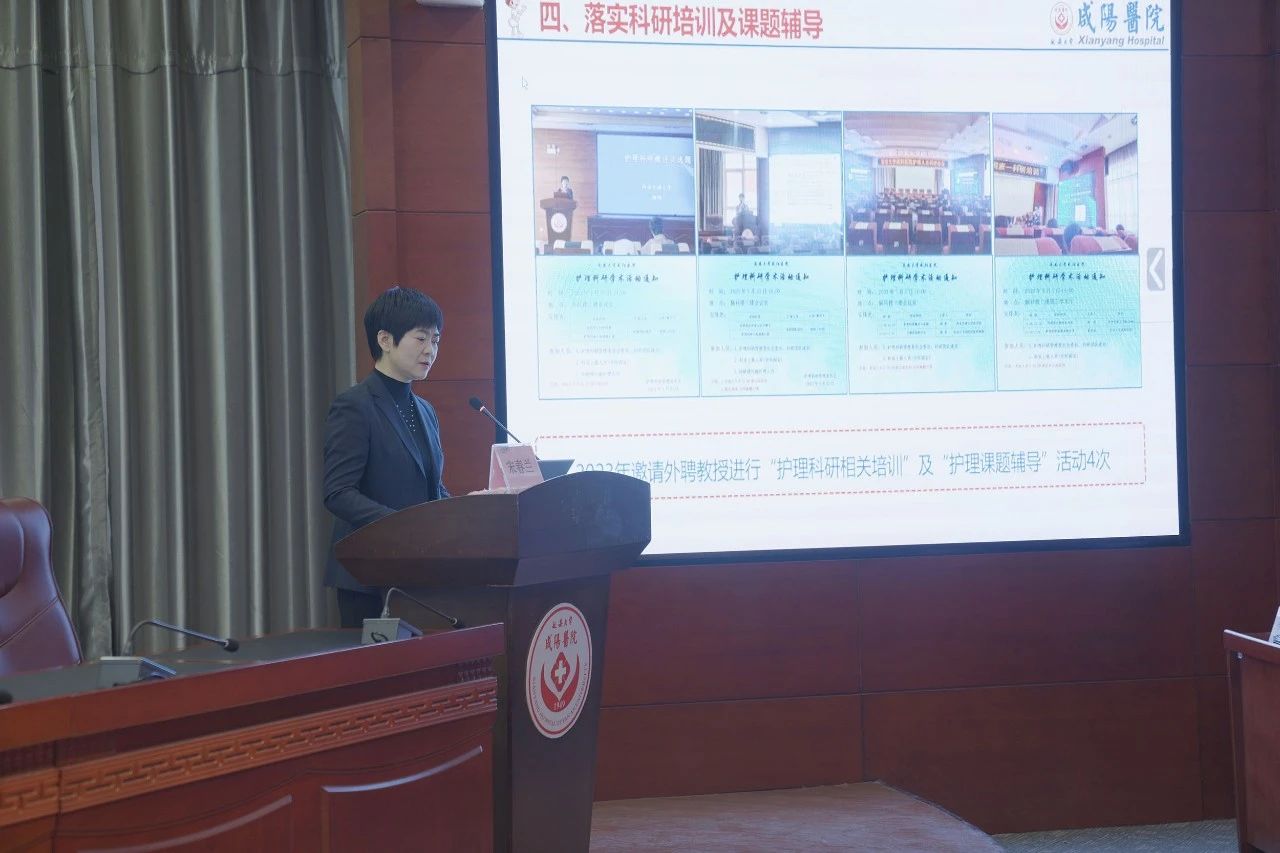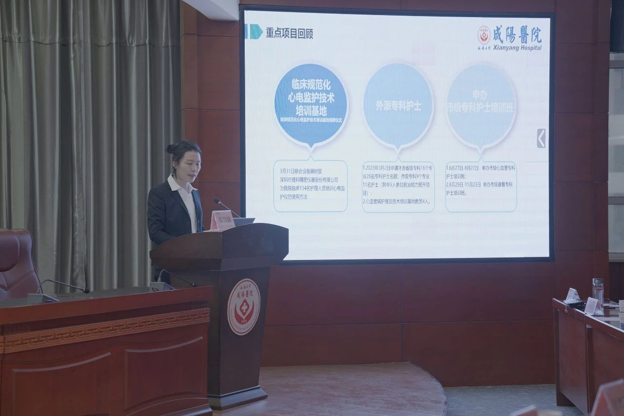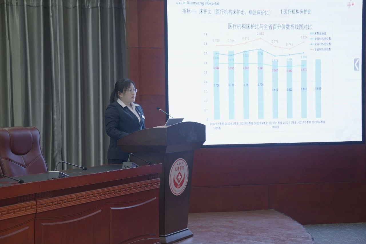 2024年1月18日下午,延安大學咸陽醫(yī)院2023年護理工作總結暨改善護理服務行動匯報會在腦血管病院第三學術廳隆重舉辦。延安大學咸陽醫(yī)院院長姚曉峰、常務副院長吳棟梁、行政副院長兼工會主席沙寧、腦血管病院院長趙雄飛、外科病院副院長姚春和、內(nèi)科病院副院長張玉河、院長助理兼醫(yī)務部部長巨濤受邀參會。會議由心血管病院黨文婷總護士長主持,護理管理委員會各專業(yè)委員會全體委員、成員,全體護士長及護理骨干參加會議。