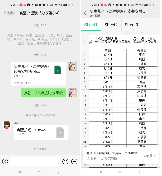 "腹有詩書氣自華,最是書香能致遠(yuǎn)”,讀書可以明理、啟智、養(yǎng)德。為積極響應(yīng)護(hù)理服務(wù)行動(dòng)計(jì)劃,進(jìn)一步根深人文護(hù)理理念,提高護(hù)理隊(duì)伍人文素養(yǎng),細(xì)化人文關(guān)懷措施,為患者提供人性化護(hù)理服務(wù)。兒科二病區(qū)護(hù)士長(zhǎng)盧群葉組織大家開展“同讀書,共進(jìn)步”活動(dòng)。大家集思廣益制定了共讀方案及讀書實(shí)施表,護(hù)士每天輪流閱讀,于當(dāng)日20:00以錄音文件形式發(fā)至微信群內(nèi),大家利用碎片化時(shí)間接龍分享聽書心得。