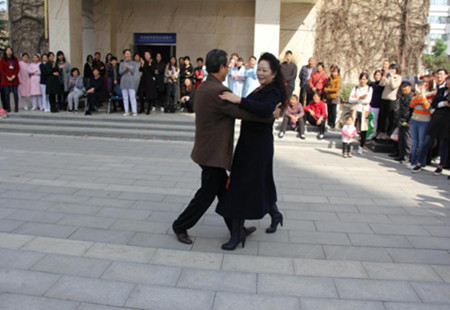 副院長袁彩華和離退職工王殿華為大家表演交誼舞