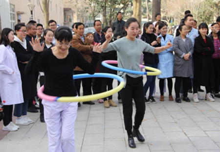 我院職工不論男女都踴躍參加到活動中,并且很多患者家屬和過路的群眾也駐足觀看,展現(xiàn)出我院美麗健康的精神風(fēng)貌。在這個乍暖還寒的季節(jié),我院職工的的歡聲笑語在院區(qū)內(nèi)回蕩,大家積極向上、收獲了健康和快樂的好心情,加深了我院職工的凝聚力。