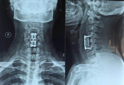 因患者年齡較輕,雙下肢無力癥狀明顯,病變區(qū)脊髓信號改變,保守治療病情會繼續(xù)發(fā)展,后期脊髓神經(jīng)變性,壓迫癥狀加重,嚴(yán)重影響肢體功能,必須盡早手術(shù)。骨一科主任楊志奎帶領(lǐng)曹熙、田濤、張凱迪醫(yī)師為其實(shí)施了頸椎前路頸5椎體次全切、椎管減壓植骨融合內(nèi)固定術(shù)。手術(shù)歷時3小時順利完成。術(shù)后第二天,患者雙手指麻木癥狀明顯緩解,四肢關(guān)節(jié)活動均正常。第三天配帶頸托保護(hù)下床活動鍛煉,雙下肢無力癥狀明顯減輕。患者現(xiàn)已康復(fù)出院。