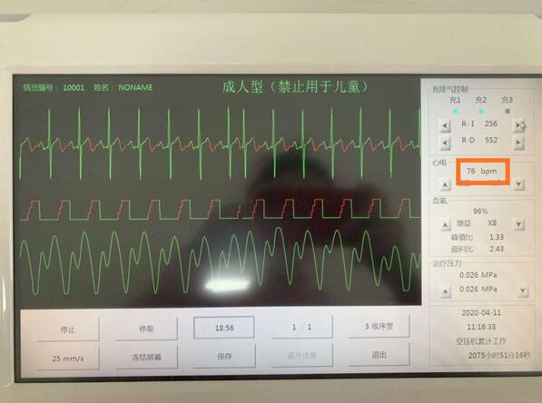 體外反搏在心臟的舒張期將雙下肢及臀部的動(dòng)脈血驅(qū)返至主動(dòng)脈里面,這時(shí)主動(dòng)脈內(nèi)的壓力(即舒張壓)大大的增加,那么強(qiáng)大的壓力使得無(wú)孔不入的血流在心臟的舒張期再次向外周供血,當(dāng)血流到達(dá)肱動(dòng)脈時(shí)被血壓計(jì)檢測(cè)到,故此就形成了脈搏是心率的兩倍的效應(yīng)。