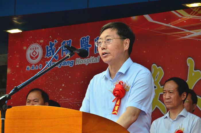 陜西省衛(wèi)健委副主任、陜西省保健局局長趙嵐發(fā)表了重要講話,她肯定了我院為促進(jìn)地區(qū)醫(yī)療衛(wèi)生事業(yè)發(fā)展、服務(wù)人民群眾身體健康,加快“健康陜西”建設(shè)做出的貢獻(xiàn)。她希望延安大學(xué)咸陽醫(yī)院能牢牢把握這一戰(zhàn)略機(jī)遇,與延安大學(xué)在人才培養(yǎng)、學(xué)科發(fā)展、隊伍建設(shè)、科學(xué)研究等方面實現(xiàn)緊密合作與資源共享,按照大學(xué)的要求,對照全省衛(wèi)生健康工作部署,積極服務(wù)國家戰(zhàn)略,充分利用高校附屬醫(yī)院的優(yōu)勢,以建設(shè)高水平高校附屬醫(yī)院為發(fā)展目標(biāo),在醫(yī)教研方面勇當(dāng)尖兵,加大高層次人才的引進(jìn)和培養(yǎng)力度,集中力量打造一到兩個高水平科研平臺,加強優(yōu)勢學(xué)科群建設(shè),不斷滿足咸陽地區(qū)對優(yōu)質(zhì)醫(yī)學(xué)人才的迫切需求,增強咸陽未來醫(yī)學(xué)人才培養(yǎng)能力,全面打造有影響力的臨床醫(yī)學(xué)教育品牌,為健康陜西建設(shè)提供科技、人才支撐作出新的更大的貢獻(xiàn)。