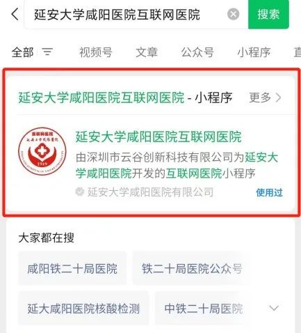 微信搜索延安大學(xué)咸陽醫(yī)院互聯(lián)醫(yī)院,點擊即可進入