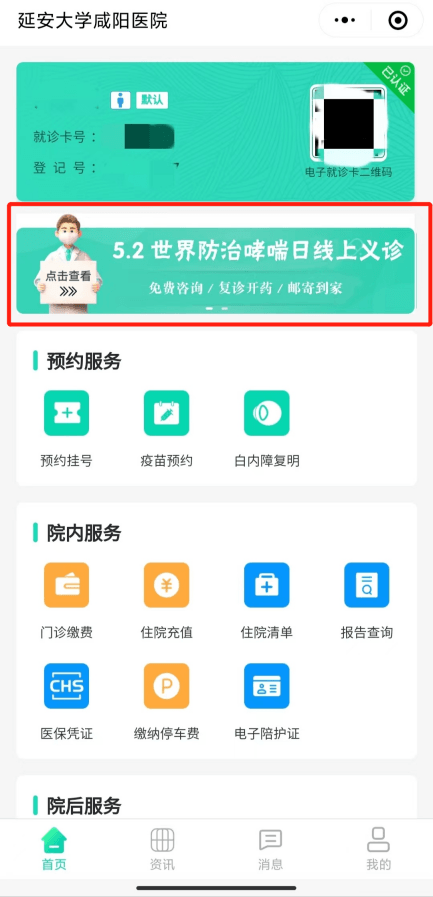 5月2日-5日是世界防治哮喘日宣傳活動。在此期間有相關(guān)疾病困擾的患者可在“延安大學(xué)咸陽醫(yī)院互聯(lián)網(wǎng)醫(yī)院”小程序上免費進行咨詢問診,使您“免費掛號,足不出戶就可以在線咨詢醫(yī)生,獲得專業(yè)的就醫(yī)指導(dǎo)?!?br />