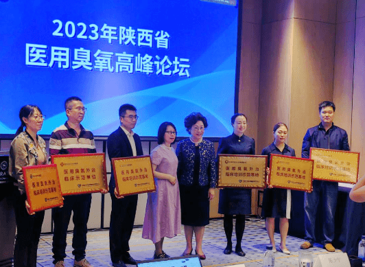 2023年5月28日,由中南大學(xué)醫(yī)用臭氧研究中心主辦的“2023年陜西省醫(yī)用臭氧高峰論壇”在陜西省西安市浐灞喜來(lái)登酒店順利召開(kāi),新疆醫(yī)科大學(xué)附屬中心醫(yī)院的劉紅霞教授、中南大學(xué)湘雅三醫(yī)院的魯建云教授、漢中市鐵路中心醫(yī)院的陳少寧教授等多位皮膚科大咖受邀參加并進(jìn)行經(jīng)驗(yàn)分享。由劉紅霞教授和魯建云教授為陜西省的七家醫(yī)院進(jìn)行授牌,我院皮膚科為咸陽(yáng)市唯一一家被授予“醫(yī)用臭氧臨床培訓(xùn)示范基地”的單位。