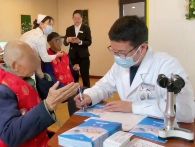 科普講座結(jié)束后,眼科醫(yī)護團隊各司其職,為各位老人分別檢查視力、測量眼壓,楊維剛醫(yī)師還通過裂隙燈、檢眼鏡為老人們進行眼底檢查,對每位老人的檢查結(jié)果進行詳細講解,提供診療意見和日常生活指導(dǎo),并耐心解答老人們提出的保健問題,現(xiàn)場歡聲一片,受到敬老院護理員及老人們的一致好評!