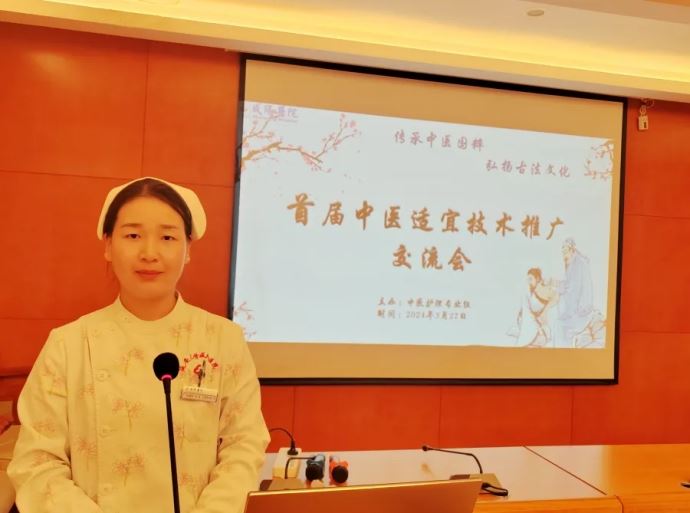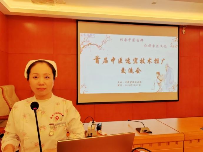 中醫(yī)護(hù)理專業(yè)組副組長(zhǎng)張雪護(hù)士長(zhǎng)致歡迎詞,并對(duì)護(hù)理部的大力支持以及與會(huì)同仁的積極參與表示感謝。鼓勵(lì)大家相互交流、互相學(xué)習(xí)、共同進(jìn)步,更好地普及、推廣中醫(yī)適宜技術(shù),推進(jìn)中醫(yī)護(hù)理全科化進(jìn)程。