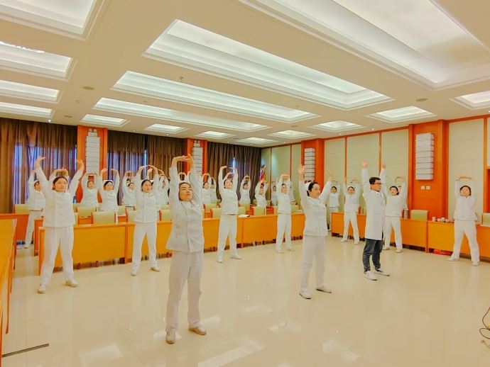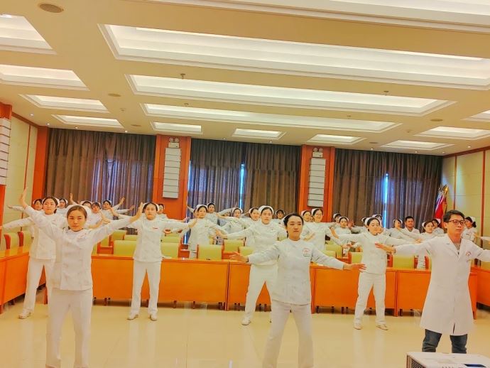 “寓國(guó)粹于行,悟古法于心”交流會(huì)在傳統(tǒng)健身功法“八段錦”練習(xí)中拉開(kāi)帷幕,與會(huì)人員在皮膚科副護(hù)士長(zhǎng)黃帥的帶領(lǐng)下,躬身感受古法文化的魅力。八段錦發(fā)源于兩宋時(shí)期,以其獨(dú)特的方式調(diào)和人體陰陽(yáng)平衡,疏通全身經(jīng)絡(luò)。讓我們?cè)诜泵Φ纳钪袦p輕壓力,舒緩身心,從而更好地掌控自己的情緒。