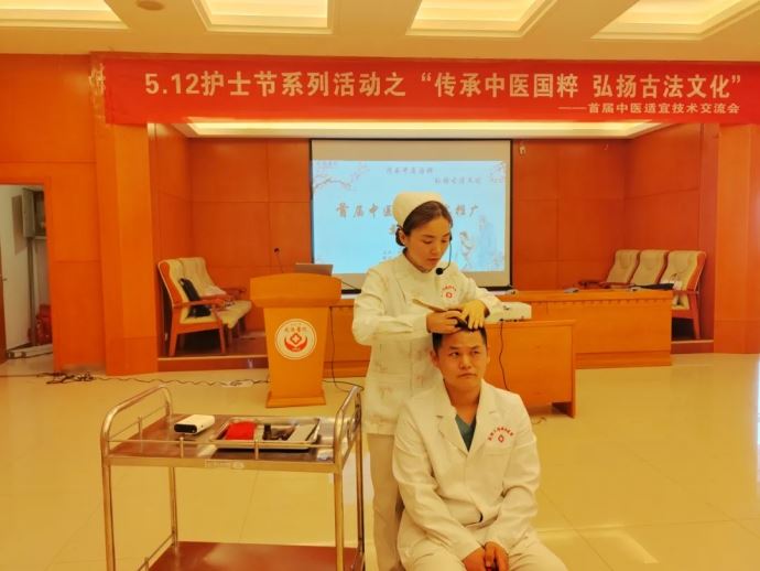 為響應(yīng)國(guó)家關(guān)于《進(jìn)一步改善護(hù)理服務(wù)行動(dòng)計(jì)劃(2023-2025年)》文件號(hào)召,滿足人民群眾的健康需求,發(fā)揮中醫(yī)護(hù)理特色與優(yōu)勢(shì),推廣中醫(yī)適宜技術(shù),培養(yǎng)中醫(yī)護(hù)理專業(yè)人才。2024年3月27日下午14時(shí),以“傳承中醫(yī)國(guó)粹 弘揚(yáng)古法文化”為主題的首屆中醫(yī)適宜技術(shù)交流會(huì)在我院心臟樓第一學(xué)術(shù)廳舉辦。臨床護(hù)理專業(yè)委員會(huì)秘書(shū)呂婷護(hù)士長(zhǎng)、中醫(yī)護(hù)理專業(yè)組組長(zhǎng)董朝妮及組員、各臨床護(hù)士共60余人參加了此次交流會(huì),會(huì)議由中醫(yī)護(hù)理專業(yè)組秘書(shū)主管護(hù)師方丹主持。