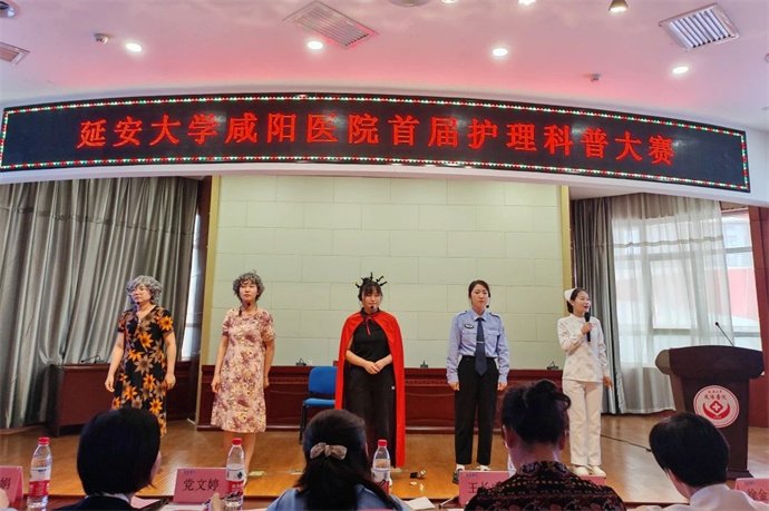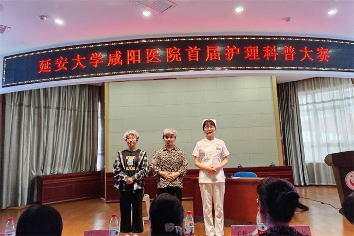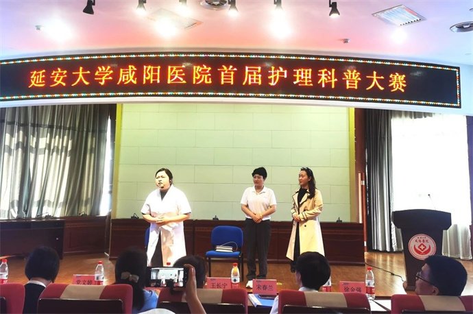 陽春布德澤,萬物生光輝。為弘揚科學精神,大力普及健康知識,提升全民健康素養(yǎng),促進護理學科與科普知識的融合,推動護理科普創(chuàng)新發(fā)展,延安大學咸陽醫(yī)院“厚植科普沃土,綻放護理魅力”首屆護理科普大賽于2024年4月18日在腦血管病院第三學術(shù)廳舉辦。院長助理兼護理部主任楊敏,外科病院王長寧副主任護師,心臟病院黨文婷總護士長,護理科普專業(yè)委員會主任委員、腦血管病院宋春蘭總護士長,外科病院邢娟娟總護士長,內(nèi)科病院徐金強總護士長,康復醫(yī)學科劉敏護士長應(yīng)邀參會并擔任評委,同時邀請患者家屬參與其中,從受眾視角感受護理科普的魅力,參加活動的還有我院護理科普管理委員會全體委員、全院護士長及各科科普聯(lián)絡(luò)員共計170余人。