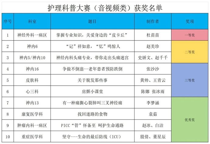 本次護理科普大賽音視頻類、表演類兩個板塊同頻啟動,旨在激發(fā)廣大護理人員從事科普工作的積極性,進一步提高護理人員創(chuàng)作科普視頻的技能水平,促進護理學科與科普知識的融合創(chuàng)新。各臨床科室踴躍報名,經(jīng)過層層篩選,最終19個音視頻類和11個表演類作品入圍決賽。