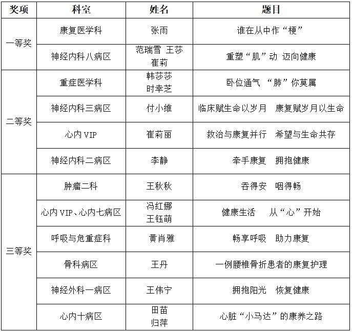 延安大學(xué)咸陽醫(yī)院第二屆康復(fù)護理案例大賽獲獎名單