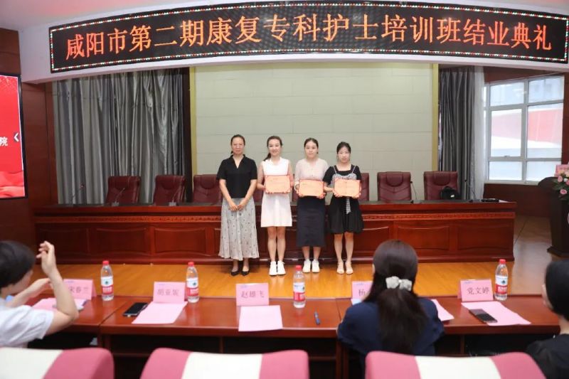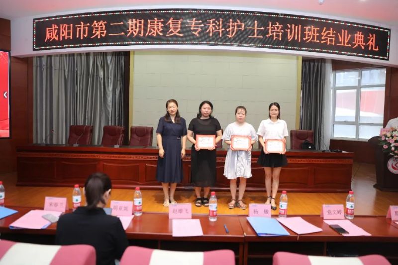 在大家的熱烈掌聲中,楊敏院長助理、胡亞妮主任、宋春蘭總護士長、徐金強總護士長、劉敏護士長分別為培訓班優(yōu)秀學員、優(yōu)秀帶教老師、科研能力考核優(yōu)秀獎、專科理論考核優(yōu)秀獎、專科技能考核優(yōu)秀獎等頒發(fā)榮譽證書。康復??谱o士培訓班班主任劉巧云護士長、趙茹護士長分別為學員頒發(fā)結業(yè)證書。