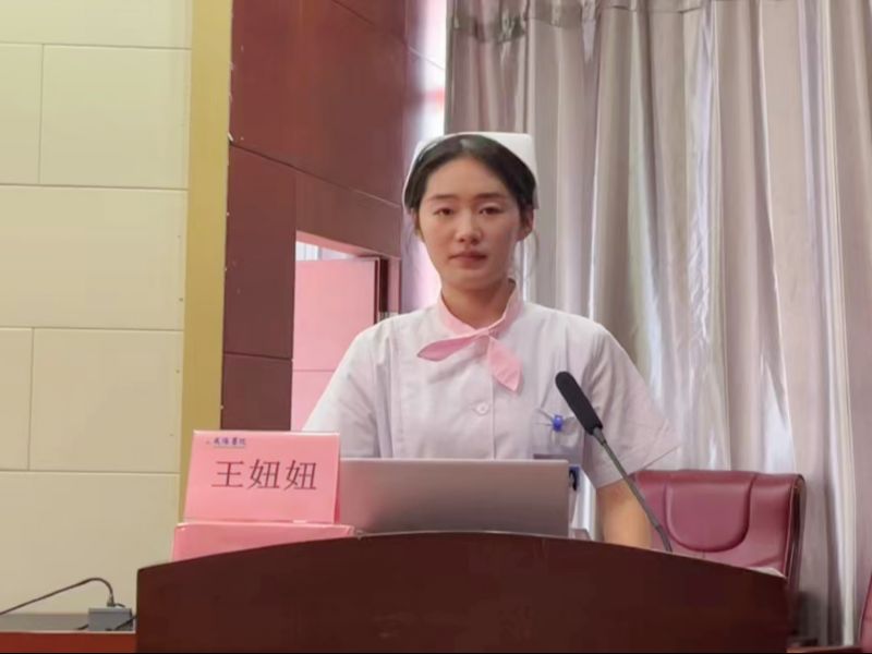 活動(dòng)第二項(xiàng),實(shí)習(xí)生代表王妞妞分享了她的實(shí)習(xí)心得與收獲,她堅(jiān)定地表示,將秉持著積極向上的精神風(fēng)貌、滿(mǎn)腔的熱情與樂(lè)觀(guān)的心態(tài),全身心地投入到臨床實(shí)習(xí)的每一個(gè)環(huán)節(jié)中。同時(shí),她承諾將嚴(yán)格遵守各項(xiàng)規(guī)章制度及操作規(guī)范,確?;颊呒白陨淼陌踩?。