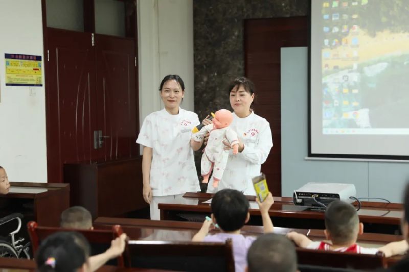 杜芝娟及陳靜護(hù)士長(zhǎng)通過(guò)人體模型現(xiàn)場(chǎng)演示了海姆立克急救法的操作步驟,并邀請(qǐng)福利院工作人員和大齡兒童參與實(shí)操練習(xí)。她們講解每個(gè)步驟的要點(diǎn)和注意事項(xiàng),利用“剪刀、石頭、布”定位,幫助他們迅速掌握正確的急救技能,提升應(yīng)對(duì)突發(fā)事件的能力。