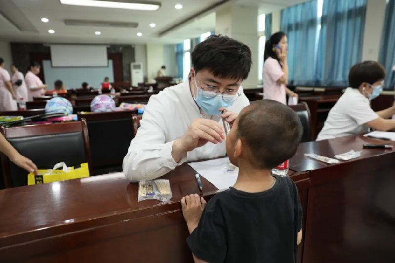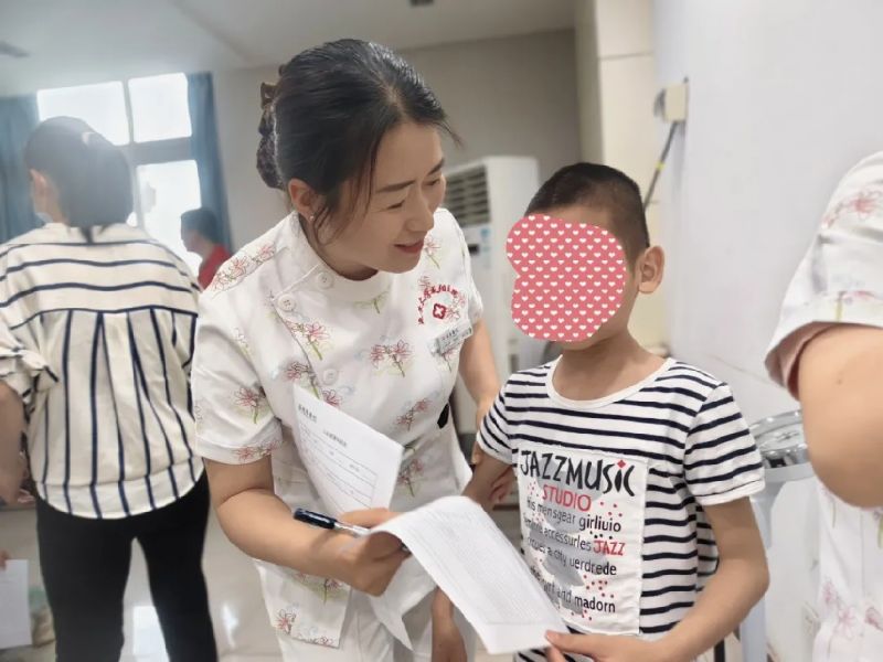 劉巧云護(hù)士長(zhǎng)帶領(lǐng)醫(yī)護(hù)人員為孩子們進(jìn)行了生長(zhǎng)發(fā)育評(píng)估和視力測(cè)試,并對(duì)其口腔、語(yǔ)言、運(yùn)動(dòng)、社交能力等方面進(jìn)行了專業(yè)評(píng)估,醫(yī)護(hù)人員詳細(xì)記錄并反饋結(jié)果,為每位兒童建立生長(zhǎng)發(fā)育健康檔案,并向福利院工作人員提供專業(yè)的健康指導(dǎo)建議。