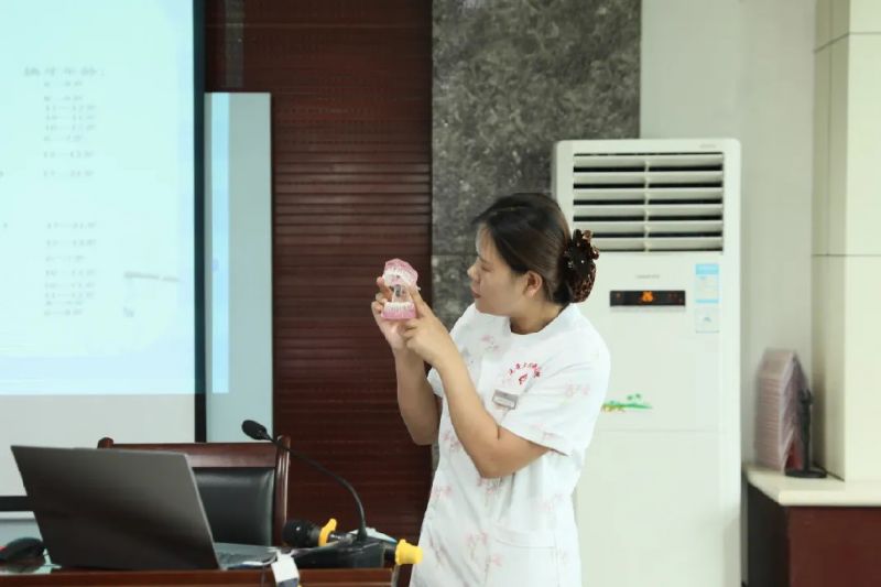 口腔病院周寧寧護(hù)士通過(guò)生動(dòng)有趣的PPT和實(shí)物模型,為孩子們講解了牙齒結(jié)構(gòu)、齲齒形成的原因,教會(huì)孩子們正確刷牙方法及日常飲食中護(hù)齒知識(shí)。孩子們聽(tīng)得津津有味,紛紛舉手參與互動(dòng)。