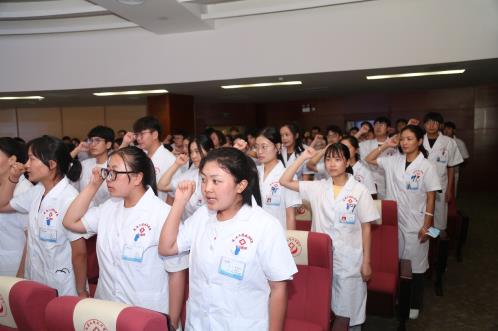 歡迎儀式上,科研教學管理中心韓曉芳主任代表醫(yī)院對實習生來院學習表示歡迎,并對醫(yī)院的基本情況進行了介紹,隨后對大家在醫(yī)院的學習生活提出六點寶貴的意見,希望同學們能迅速從思想上完成角色定位和轉變,更好、更快地適應新環(huán)境,以滿腔熱情投身于實習中去,做一個文化素養(yǎng)與專業(yè)素質(zhì)兼?zhèn)涞尼t(yī)學人。隨后,學生代表劉宇成帶領全體實習生進行醫(yī)學生宣誓。